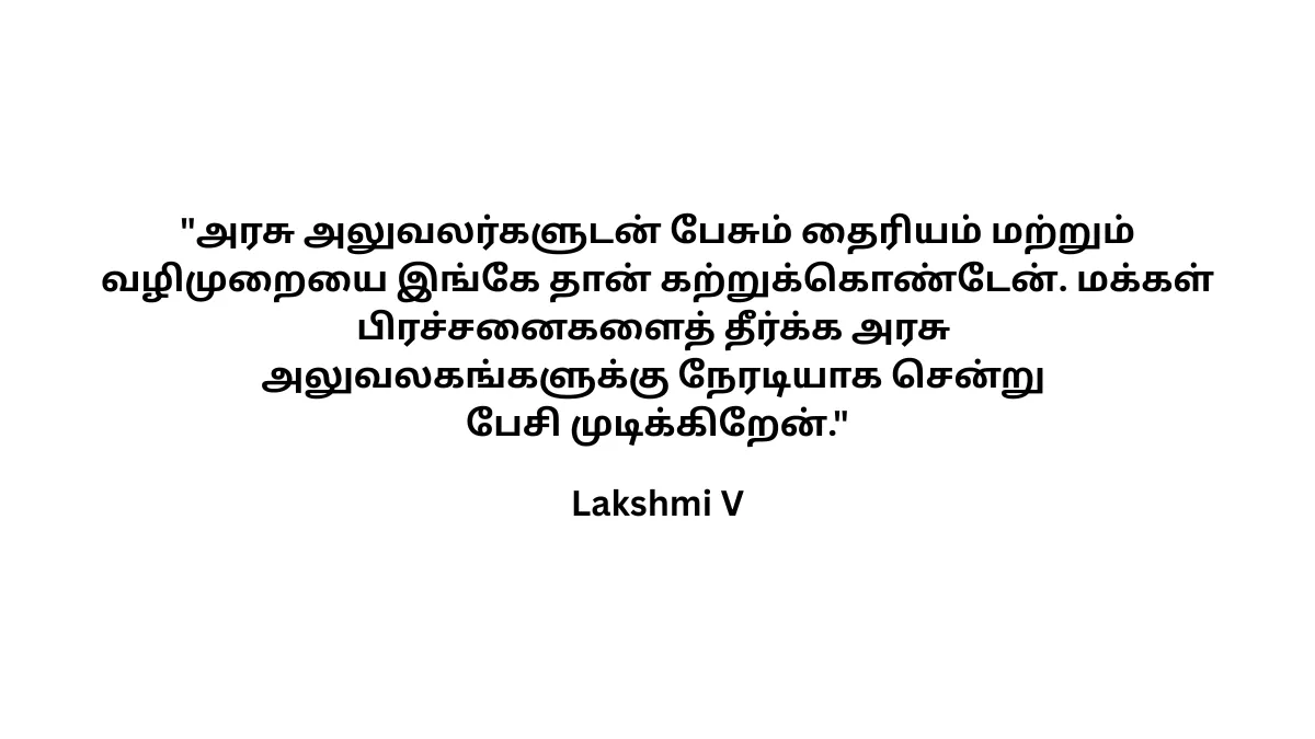 அரசு அலுவலர்களுடன் பேசும் தைரியம் கற்றேன்.