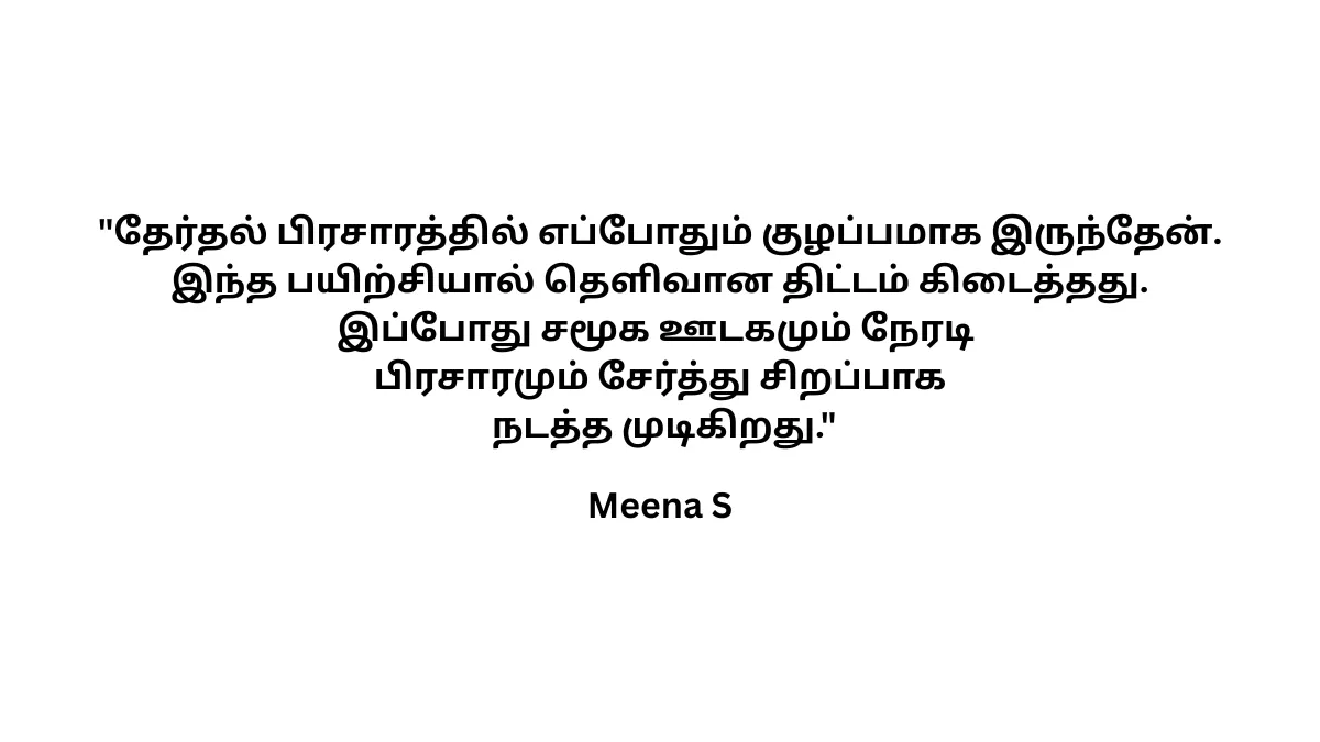 👉 ஆம்! பயிற்சியில் பகிரப்படும் Branding, Promotion, Election Tools அனைத்தும் நடைமுறையில் பயன்படுத்தக்கூடியவை.